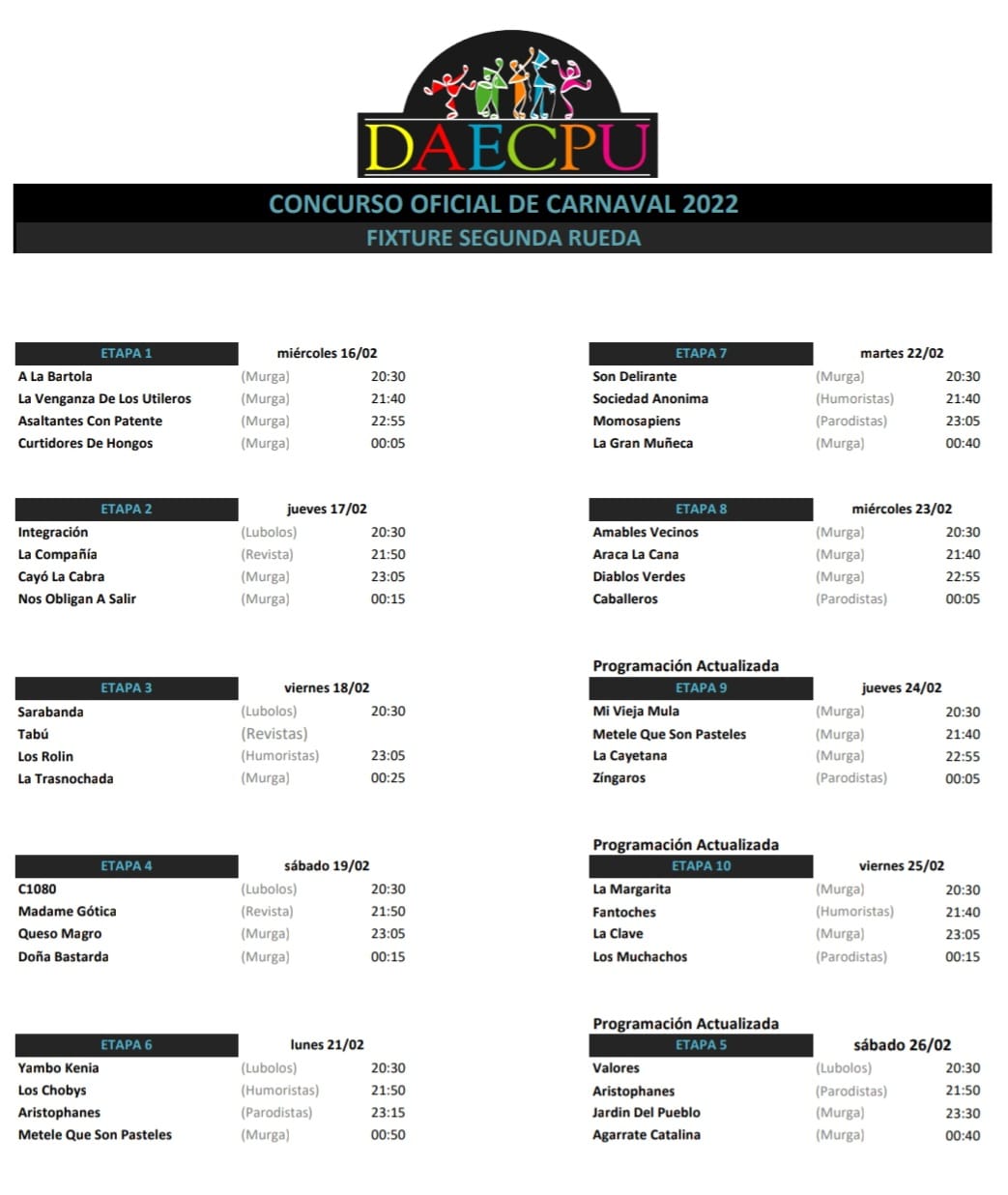 Fixture de la segunda rueda del Concurso Oficial 2022