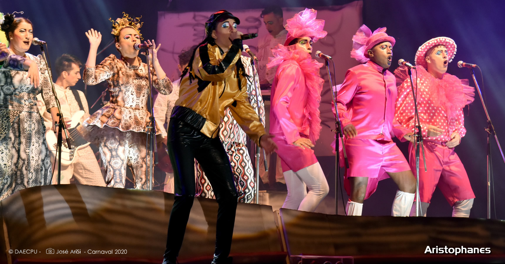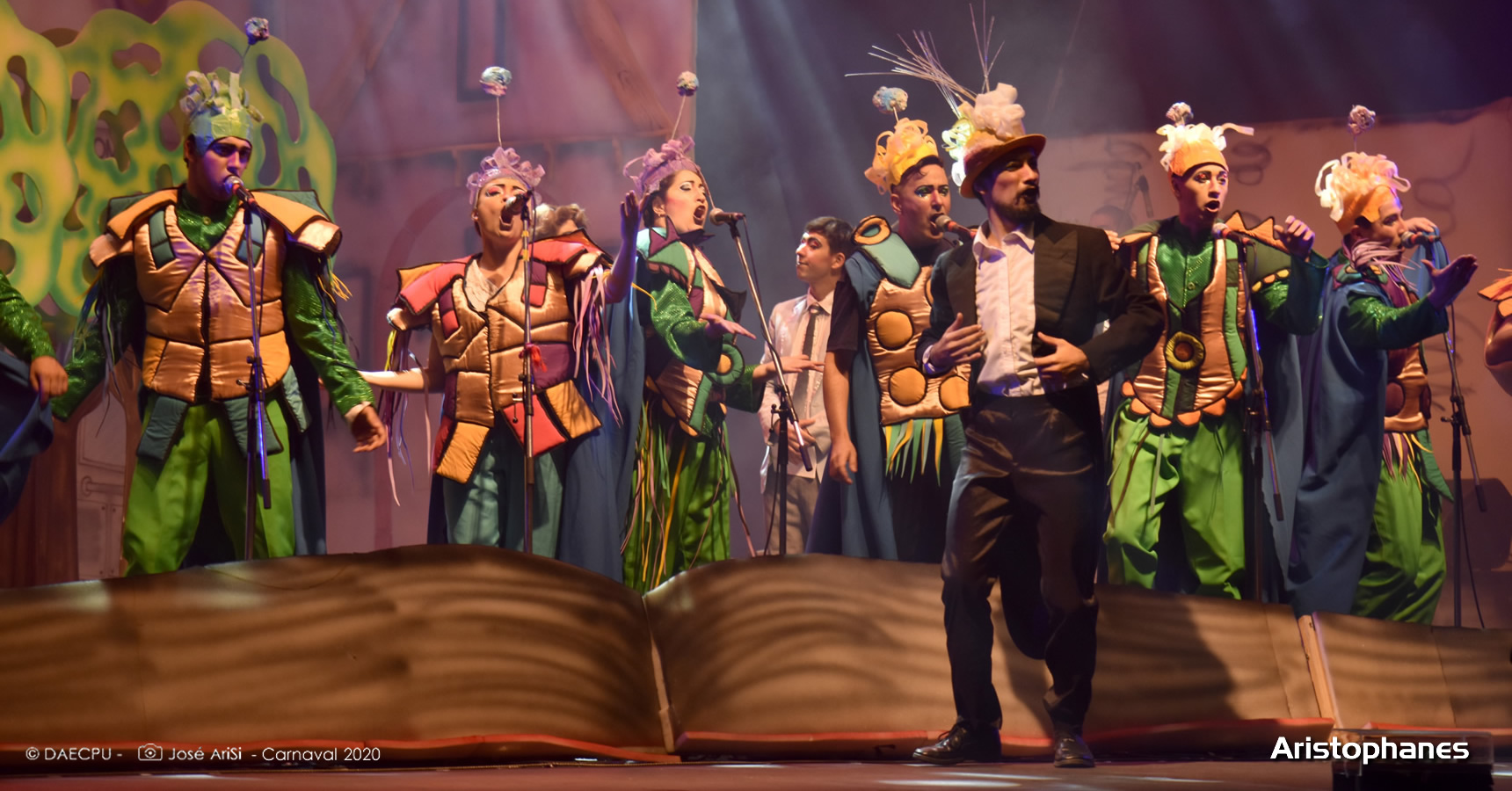 El primer turno de la noche correspondió a los parodistas Aristophanes, que llegaron con dirección responsable de Federico Pereyra, textos de Federico Pereyra, Pablo Fidelin y Matias Vidal, canciones de Diego Melano, arreglos corales de Diego Melano, musicalidad de Francisco Romero, coreografías de Gonzalo Moreira, luces de Rafael Maciel, diseño de vestuario y escenografía de Juan Pablo Parente y Germán Magano, maquillaje de Germán Magano, realizacion de vestuario de Lita Silveira, puesta en escena de Federico Pereyra, asistencia de dirección de puesta de Virginia Capobianco y producción de Juan Cristóbal.